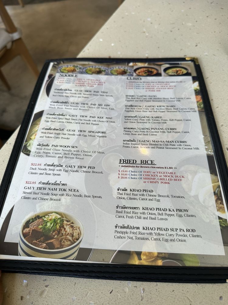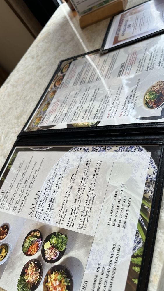 The menu is a culinary journey showcasing a plethora of options, including standout dishes like the papaya salad, renowned for its bold flavors and impeccable seasoning, and the panang curry with shrimp, perfectly paired with fragrant jasmine rice. For vegans and vegetarians, choices abound, ensuring everyone finds a delectable delight.